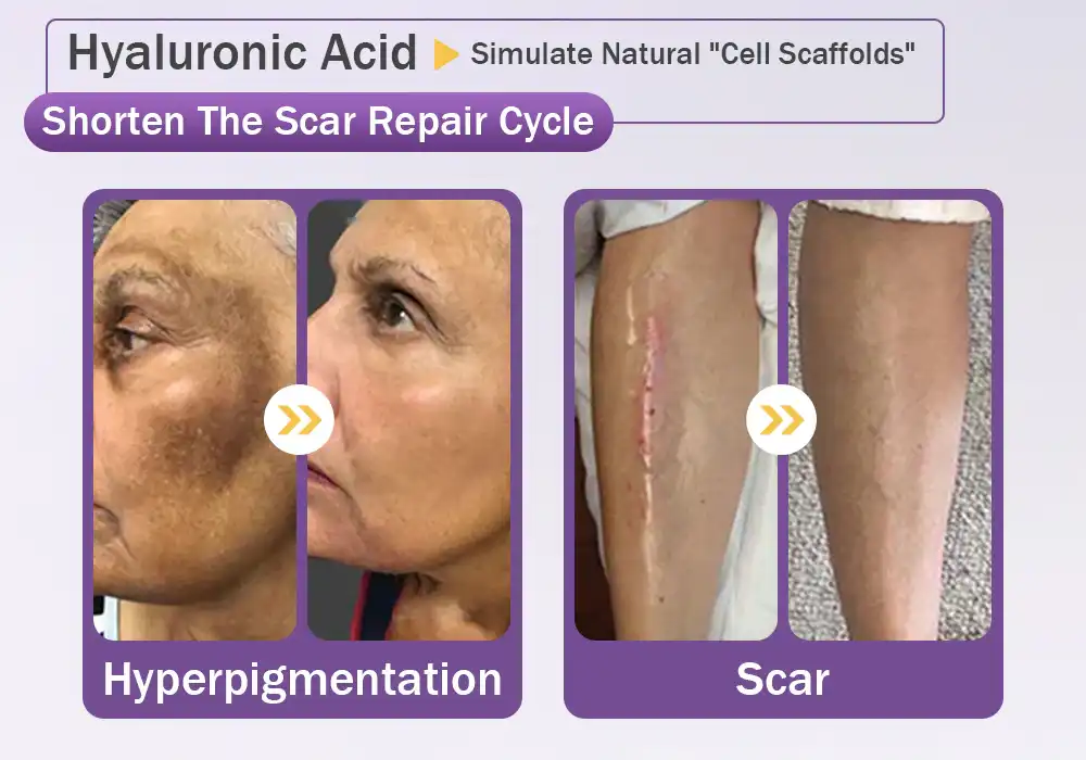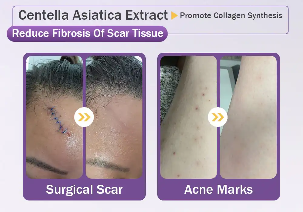 ✅ Centella Asiatica Extract – Known as the “King of Skin Repair Plants,” its active compounds, including Madecassic Acid and Asiaticoside, effectively stimulate collagen synthesis and reduce scar tissue fibrosis. Numerous clinical studies have demonstrated its significant ability to improve structural scars such as surgical scars, acne marks, and stretch marks.